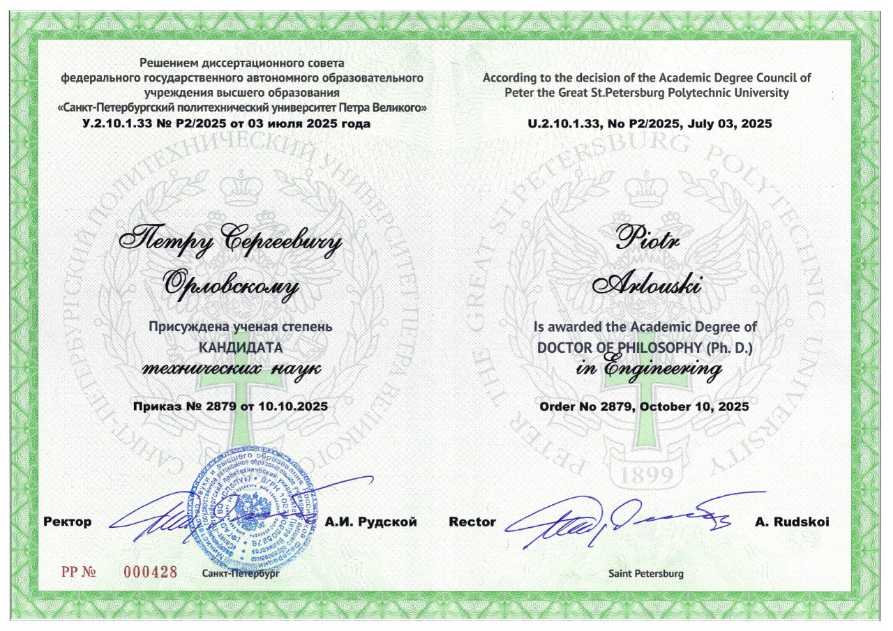 Старший преподаватель кафедры “Техносферная безопасность” Петр Орловский успешно защитил диссертацию и стал кандидатом технических наук!