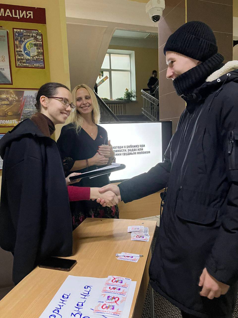 Особое внимание уделялось живому диалогу: психолог отдела профилактики ВИЧ/СПИД Бритун О.А. консультировала студентов прямо во время мероприятия, помогая разобраться в сложных вопросах.