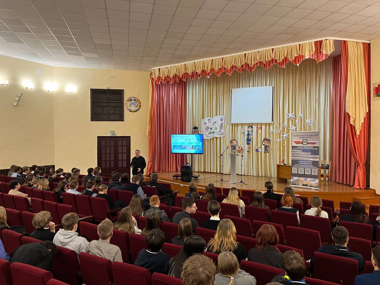 В средней школе №2 города Мстиславля состоялась профориентационная встреча для учащихся 10-х и 11-х классов. Мероприятие прошло в теплой атмосфере, а его главная цель заключалась в том, чтобы познакомить школьников с возможностями обучения в Белорусско‑Российском университете и помочь им определиться с будущей профессией.