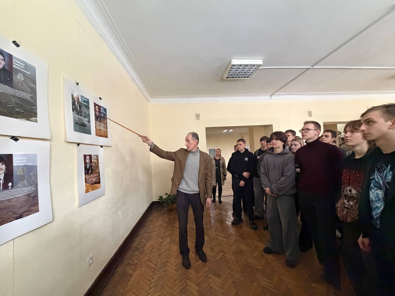 На мероприятии студенты смогли увидеть портреты героев, среди которых были Герои Советского Союза Николай Чепик и Андрей Мельников, а также узнать о героях восстания в крепости Бадабер, в числе которых оказался наш земляк Александр Зверкович. Также была представлена история служивших в Афганистане сотрудников и студентов ММИ, награжденных боевыми наградами СССР и Демократической Республики Афганистан.