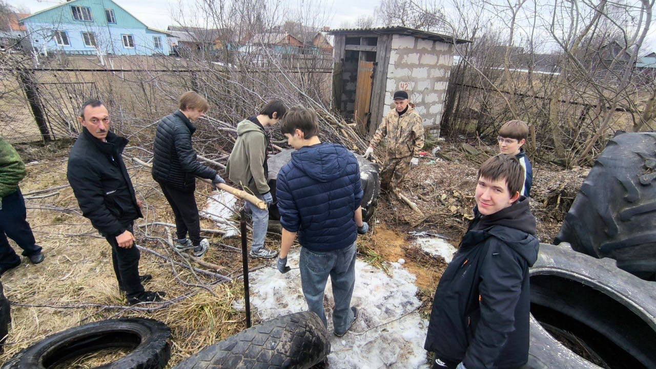 Одним из ключевых этапов стало участие ребят в трудовом десанте по благоустройству гаражного хозяйства. Студенты провели масштабную расчистку территории: вынесли и подготовили к сдаче во вторчермет значительный объём металлолома, а также навели порядок в зоне хранения — систематизировали и организовали складирование покрышек.