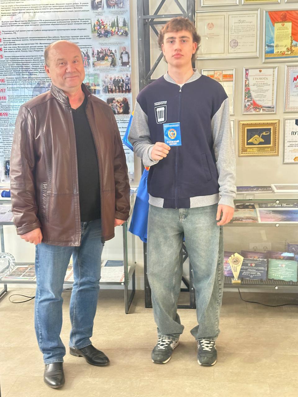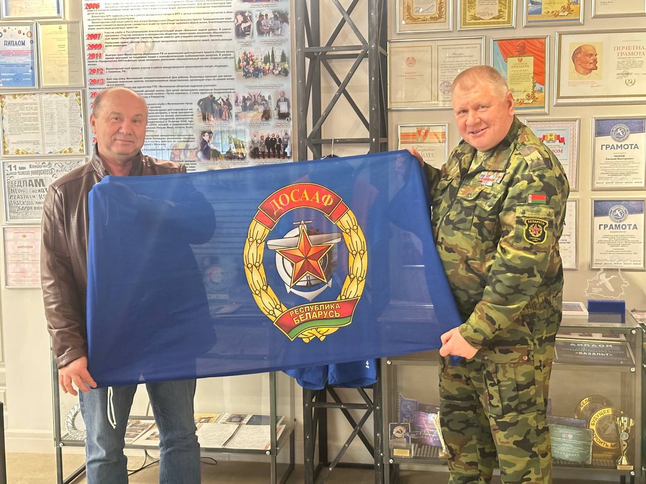 Завершилась встреча торжественным вручением членских билетов новым участникам клуба «БРУствер». Первичная структура университета также получила флаг ДОСААФ и сертификат на посещение музея авиации и космонавтики спортивно‑патриотического центра ДОСААФ в Минске – в знак признательности за активное сотрудничество.
