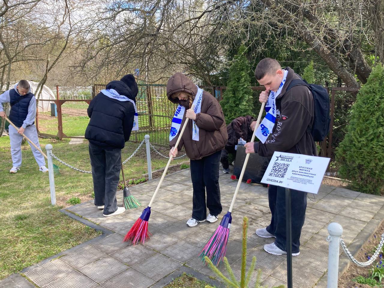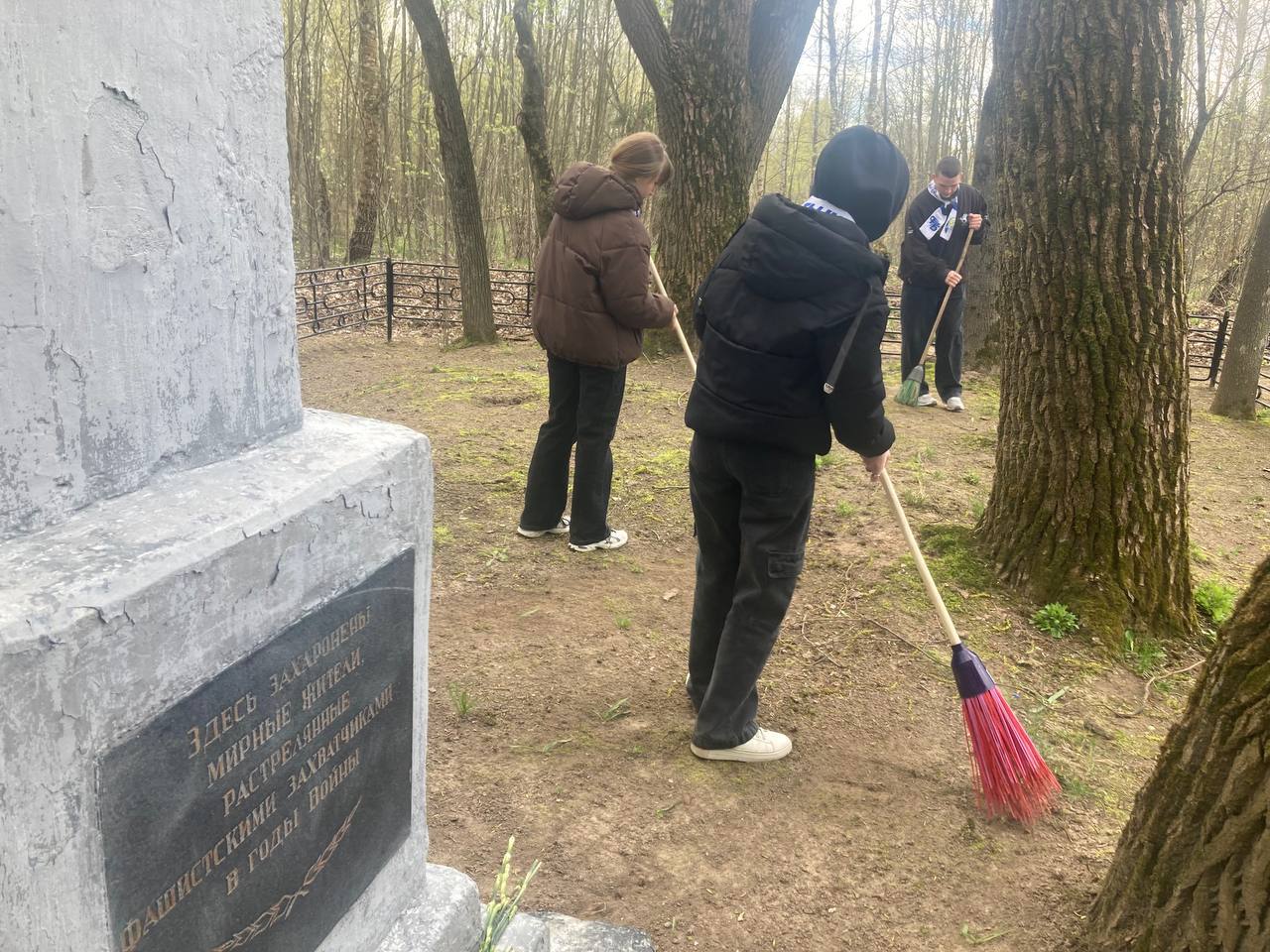 Добровольцы привели в порядок братскую могилу неизвестным красноармейцам, павшим при обороне Могилёва в 1941 году, а также место памяти в деревне Новое Пашково, где фашисты расстреляли мирных жителей. Ребята убрали листву и мусор, тщательно вымыли памятные таблички и протёрли ограждения.